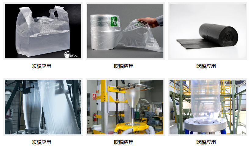 大多数PE用于吹膜加工薄膜,通用低密度PE(LDPE)或线性低密PE(LLDPE)都可用。HDPE薄膜级一般用于要求优越的拉伸性和极好的防渗性的地方。例如,HDPE膜常用于商品袋、杂货袋和食物包装。PE薄膜加工一般用普通吹膜加工或平挤加工法。