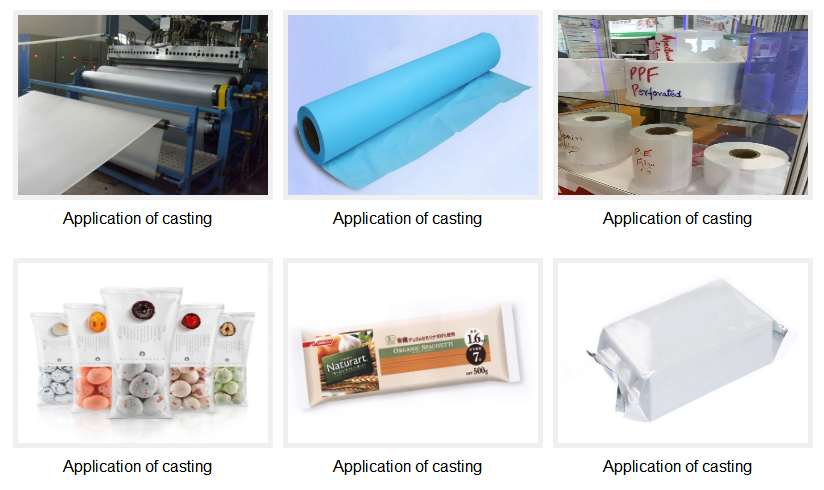 Casting is a process for the production of plastic film, after the raw materials melting plasticizing extruder. Through T type structure of the forming die extrusion, a flake cast to a smooth spinning cooling roller of the roller surface, diaphragm in the cooling roller by cooling stereotypes, after traction and cutting edge after to winding products.